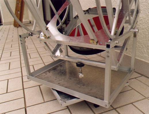 Unten der Dob Driver II, dessen Anschlusselektronik unter dem Teleskop verbaut ist.