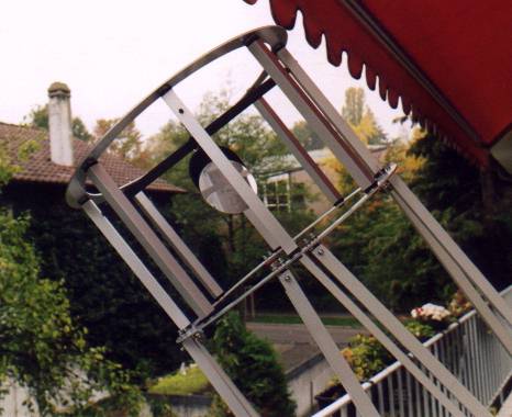Zwischen Spiegelbox und Okularbox sitzen 8 Aluminiumstangen (Länge ca. 1,30 m, 20x20x2 stark), die fachwerkartig für eine stabile verwindungssteife Verbindung sorgen. Näheres zur Statik und Mechanik solcher Strukturen findet sich im Berry/Kriege. Die Stangen sitzen in jeweils einer Richtung gerade entlang der Tubusachse, da sonst die mechanische Befestigung zu kompliziert würde. Als Verbindungsteile dienen wieder verzinkte Stahlbleche mit einer mittig eingesetzten M5-Schraube, auf die die Stangen einfach aufgesetzt werden. Als Befestigung dienen mit Flügelmuttern, die gegen ungewünschten Hauptspiegelkontakt mit feinen Drähten an den tragenden Strukturen befestigt sind. Andere Befestigungsmöglichkeiten sind (sie ahnen es schon) im Berry/Kriege diskutiert. Die beste Möglichkeit scheint mir im Moment die Befestigung über Fittinge aus der Rohrtechnik zu sein. Vorteile: Keine freien Teile, sehr rasch zu befestigen und sehr leicht (Link: x). Allerdings sind diese relativ kompliziert in den Rohren zu fixieren, weshalb ich (vorläufig) darauf verzichtet habe.