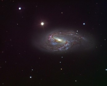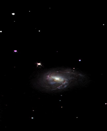 Einen hab' ich noch.... Leider habe ich noch keine Farbaufnahmen von M66 angefertigt, aber mit dem LRGB-Verfahren ist möglich, sich die Farben anderer Bilder zu leihen (Natürlich nur mit Genehmigung des Bildautors). Der Star-Astrofotograf Robert Gendler war so freundlich, mir seine LRGB-Aufnahme von M66 für diese Bearbeitung zur Verfügung zu stellen. CADET hat alle notwendigen Routinen für das LRGB-Verfahren eingebaut, somit kommt man schnell zum Ergebnis im unteren Bild (linke Abbildung). Es wurde in CADET mein Luminanzsignal zu 100% verwendet. Der Vergleich mit Robert Gendler's Originalaufnahme (rechts) als Referenz zeigt, wie viele reale Details in der Aufnahme mit einer Webcam vom Typ SC3 vorhanden sind.
