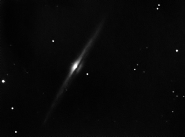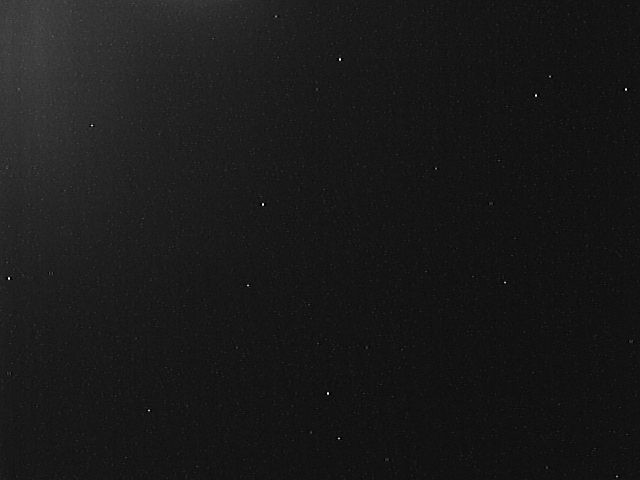 Hier ein Darkframe (3 Aufnahmen addiert) mit 60 s bei 25°C. Das Verstärkerglühen ist minimal, es sind für die Temperatur nur sehr wenige hot pixel sichtbar. Die Kamera ist prinzipiell auch im Sommer ohne Kühlung einsetzbar. Im kälteren Nächten werde ich auf die stromfressende Peltier-Kühlung verzichten können.